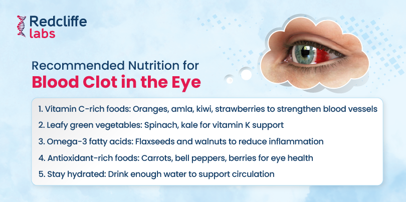 Blood clots in the eye usually resolve on their own in 1-2 weeks. Resting the eyes, using artificial tears, avoiding eye rubbing, and managing blood pressure help recovery. Applying cold compresses in the first 24 hours may reduce redness. Consult a doctor if symptoms worsen or recur frequently.